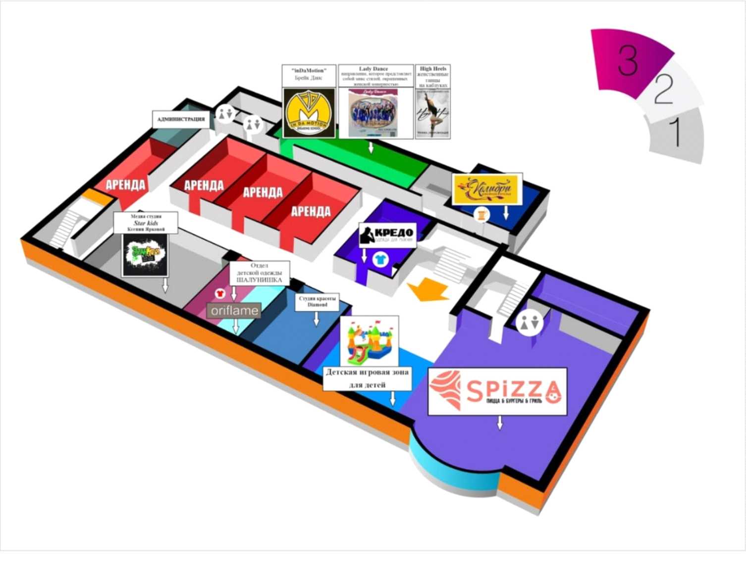 Готовые помещения под торговлю, услуги, детские кружки и досуг, площадью от 26,1 – 29,3 кв.м., находящегося на 3-ем этаже торгового центра. Стоимость аренды 825 руб./м2.